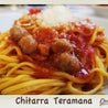Piatto tipico della tradizione Teramana: pasta chitarra con sugo di pomodoro e "pallottine"(polpettine) di carne fresca