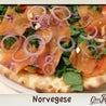 Mozzarella fusa, pomodoro a fette, rucola, salmone affumicato, cipolla rossa, limone e pepe