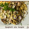 Spaghetti in bianco con olio extravergine di oliva, aglio e prezzemolo freschi e vongole fresche in padella