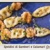 Spiedini di gamberi e calamari con leggera panatura, aglio olio extravergine d'oliva e prezzemolo, cotte alla griglia