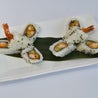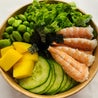 GAMBERI COTTO- MANGO- CETRIOLI- INSALATE- ALGHE MARINE- EDAMAME-SALSA TERIYAKI SU RISO DA SUSHI SELEZIONATO