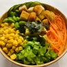 POLLO FRITTO-CETRIOLI-EDAMAME-MAIS-CAROTE-INSALATA-ALGHE MARINE-SALSA SOIA SU RISO DA SUSHI SELEZIONATO