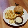 Salmon burger 150gr con champignon, pomodoro, formaggio cheddar, insalata e maionese alle aringhe, e patate dippers