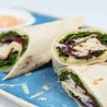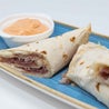 Piadina con insalata cappuccio, pomodoro, kebab, salsa yogurt, salsa piccante arissa