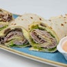 Piadina con porchetta, formaggio brie, funghi trifolati, lattuga