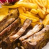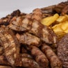 Più buona, più abbondante e cotta a puntino, con salamella, costa di maiale, coscia di pollo marinato e pancetta marinata e grigliata, servita con polenta grigliata e patate fritte