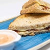 Tostone ai 5 cereali con formaggio edamer, salsa di pollo e zucchine grigliate