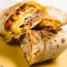 Piadina con salsiccia, cipolla e peperoni, formaggio edamer