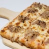 Pancarrè misura 13cm senza crosta, formaggio edamer filante e prosciutto cotto senza polifosfati, carciofi, funghi trifolati e salsa di pomodoro