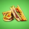 Pane in cassetta, fontina, pollo, bacon, uova strapazzate, maionese, insalata e pomodoro