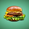 Pane originale usa, burger di fassona, cheddar, insalata, pomodoro e cetriolini