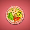 Insalata verde , pollo, crostini di pane , scaglie di grana e salsa caesarInsalata pollo e avocado