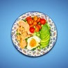 Pane in cassetta, fontina, avocado, verdure miste, uova strapazzate, maionese, insalata e pomodoroItalian club sandwich
