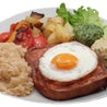 Pane pizza (croccante), hamburger, lattuga, pomodorini, formaggio, cipolla, cetriolini, speck, salse e patate fritte — Pizza bread, burgers, lettuce, cherry tomatoes, cheese, onion, gherkins, speck, sauces and french friesBufaloBurger