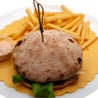 Pane, hamburger di bufalo, mozzarella di buffala, lattuga, pomodorini, crema di basilico e patate fritte Bread, buffalo burger, buffala mozzarella, lattuce, cherry tomatoes, basil cream and french friesPucciaBufaloBurger
