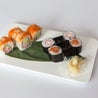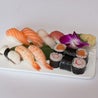 6 pezzi di sashimi di pesce misto, 8 nigiri e 8 maki