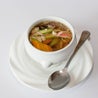 Zuppa di asparagi con surimi gamberi filetto di persico funghi e carote