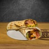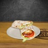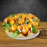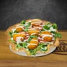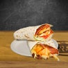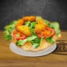 Tortillas, iceberg, misticanza, olio extra vergine di oliva, pepite di pollo, pomodoro, salsa yogurt, rucola, salsa cheddar