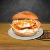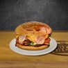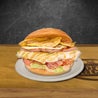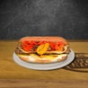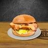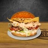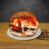 Pane, hamburger di manzo, insalata, mortazza , bacon, chips , pomodoro, provola affumicata, salsa miky
