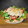 Tortillas, iceberg, misticanza, olio extra vergine di oliva, petto di pollo, pomodoro, salsa yogurt, rucola,