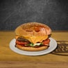 Pane, formaggio, bbq , hamburger di manzo, insalata, bacon, pomodoro, salsa alma