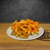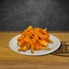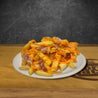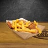 Patate fritte, cipolla croccante, bacon, salsa cheddar